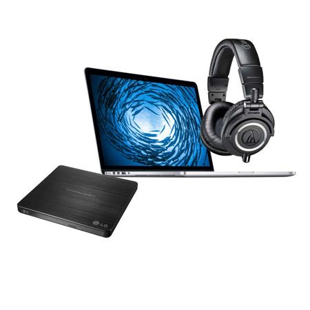 Whether you choose the 13-inch or 15-inch model, you'll get two Thunderbolt 2 ports, two USB 3 ports, an HDMI port, an SDXC card slot, and a headphone port. So in a matter of minutes you can build an entire professional studio with MacBook Pro as its centerpiece.
