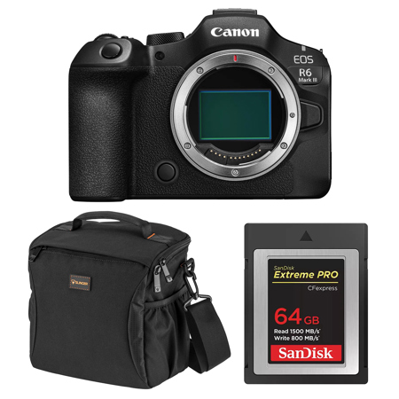 The Canon EOS R6 Mark III is built to meet your demands and deliver stunning results. Capture 32.5MP stills with impressive detail at up to 40 fps and enjoy the comfort of pre-continuous shooting to aid you during those unpredictable moments. With Canon Log 2 color, 4K 120p slow motion, high-quality oversampled 4K 60p, 7K RAW recording at 60p, and 7K 30p Open Gate recording for post production versatility, this is a hybrid camera you've been waiting for.