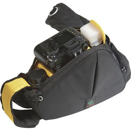 The Kata DT-211 is a comprehensive sling torso pack which features unique TST RIB structural protection and is designed with style to hold and organize your D/SLR, extra lenses and accessories readily accessible at any time and comfortable to carry. This unique torso pack allows you the option to either carry your gear on your back or on your torso, making it easy to access your gear and switch between positions.