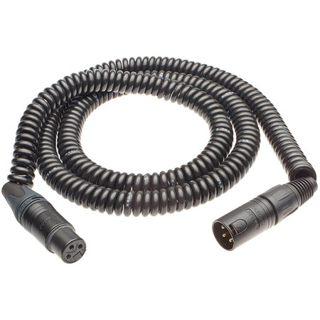 This coiled XLR cable features Neutrik male and female connectors for reliable, professional audio connections, with a stretchable design that extends up to 40 feet for flexible use. It incorporates advanced shielding via an aluminum Mylar helically wrapped foil with 25% overlap to minimize interference, paired with 28 AWG soft annealed tinned copper conductors (0.015" diameter) insulated by a 0.010" wall semi-rigid polyvinyl chloride layer rated for temperatures up to 105 Degree C. The durable outer jacket, made of 0.045" wall polyurethane with a 0.155" diameter, ensures flexibility, longevity, and resistance to wear in demanding environments.