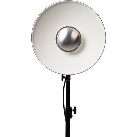 The inside of this beauty dish is white with an orange-peel texture, which creates a more even reflection of the light on your subject.