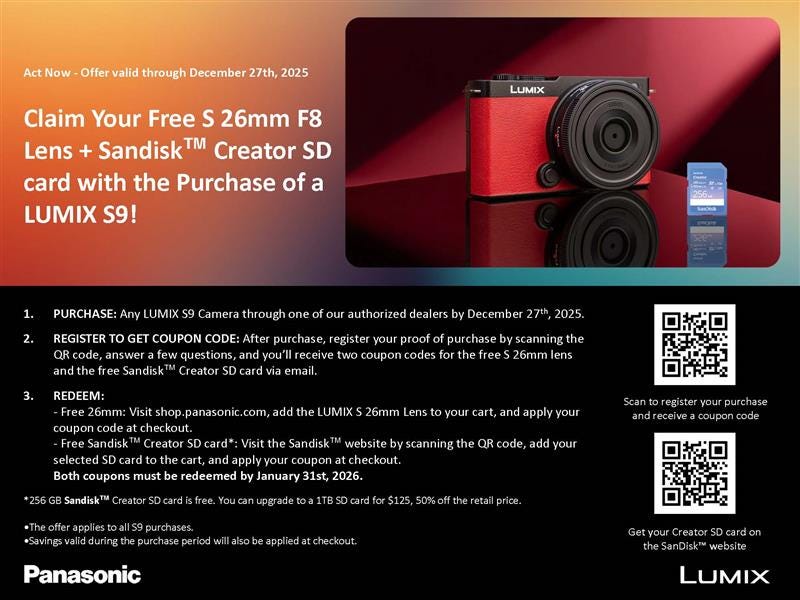 The LUMIX S9 features REAL TIME LUT, which applies signature presets directly in-camera. This allows you to preview and apply professional color grades instantly, enhancing your content and making it stand out on social media platforms. The LUMIX Lab app facilitates super-fast sharing through your smartphone, ensuring your stunning shots are instantly ready for upload.