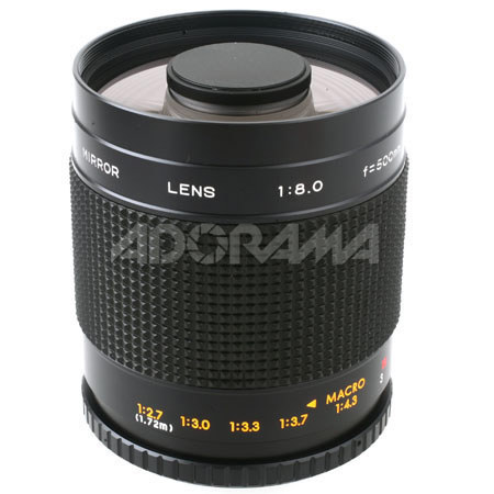 This ultra-telephoto lens is incredibly compact and lightweight. Using an advanced reflex design, the Pro Optic mirror lens is ideally suited for wildlife and sports photography. It has a fixed aperture of f/8. Simple T-mount adapters screw on the lens to fit almost any SLR camera. Works with auto focus cameras in manual focus mode only. Includes a soft carrying pouch. T mount purchases seperatly.