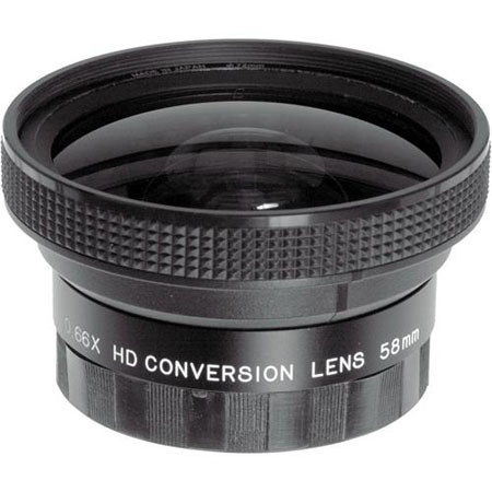 In designing this lens we successfully controlled the color aberration and distortion of picture image at the least, and could reach to the highest resolution power of *350-line/mm at center. Mounting threads is 58mm. Compatible with SONY VX-2000,DSR-PD150**, Canon GL-1/2,XM-1/2 Front filter size is 72mm. Nominal 0.66x(Actual 0.66x/diagonal, 0.66x/center). Size/Weight : 75mm x 36mm 178g * MTF 30%. Equivalent to 1890-line/TV(1/4" CCD),2520-line/TV(1/3" CCD). **The picture becomes soft focus beyond 6x zoom telephoto position while wideangle lens is on the camera.