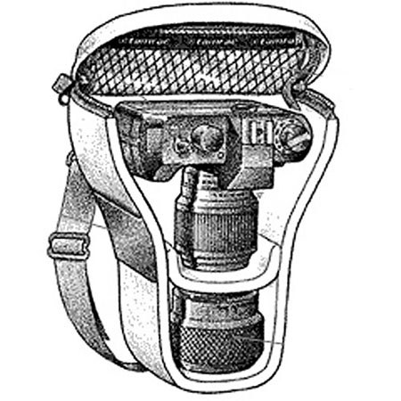 This Tamrac original design holds a 35mm SLR camera with an attached lens up to 7 1/2 inches long. An internal padded divider provides protection for extra lenses or accessories. A large outside pocket will hold a flash, extra film and accessories. Inside the fast-access zippered top is a Windowpane-Mesh pocket for filters, lens caps or cleaning materials. Remove the non-slip shoulder strap and carry the bag on the belt as a holster.