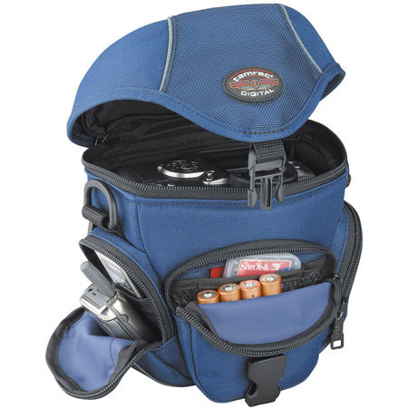 The Travel Zoom 4 was designed to hold a digital or film SLR with lens attached up to 3 3/4" long. A front pocket holds film and features the Memory & Battery Management System (patent pending) that uses red flags to identify available memory cards and batteries from ones that are used up. An EasyGrip carrying handle, shoulder strap, and belt loops provide convenient carrying options.