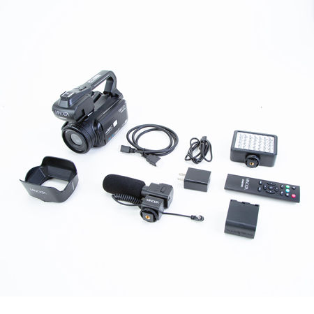 • The included lens hood, handheld stabilizer, stereo microphone, and LED video light will help you record videos like a true professional