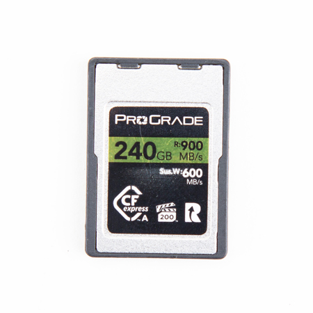 The 240GB & 480GB CFexpress Type A Gold Memory Card from ProGrade Digital provides read speeds of up to 900MB/s, which helps to quickly offload content to your computer, sustained write speed of 600MB/s, and write speeds of up to 800MB/s.