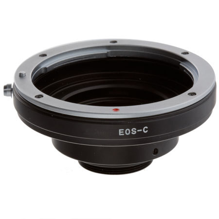 A lens adapter for mounting Canon EOS series lenses on C-mount cameras.