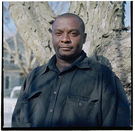 Mike: Mike is an African-American with medium-brown skin, and he’s wearing a black shirt. I shot his portrait in late afternoon sunshine primarily to assess shadow detail, but the picture also provides some information on exposure latitude and the film’s ability to differentiate subtle skin tones.