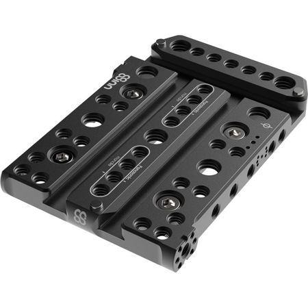 8Sinn Top Plate for Panasonic EVA1 is attached safely to the camera by four 1/4" screws. The top plate surface is covered with threaded mounting holes: 1/4" and 3/8" - which is a standard set of mounting points applied on most camera accessories.