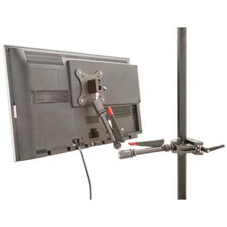 The VESA to 5/8" Receptacle allows small to medium sized VESA compatible monitors to be mounted on standard grip equipment via its 5/8" receptacle or 1/4"-20 and 3/8"-16 female threaded tap-ins. It has two 5/8" receptacles allowing you to mount monitors from below on stands or from the back via a horizontally mounted pin or articulating arm. The VESA mount works well with the 9.Solutions' El-Bo Arm, allowing you to easily reposition the monitor.