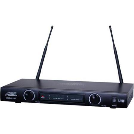 Overcome the limitations of wired microphones with the Audio2000'S AWM6012U UHF Dual-Channel Wireless Microphone System. This advanced system offers superior RF transmission and reception, ensuring clear, uninterrupted audio over a range exceeding 100 feet. The package includes an AWR6012U Receiver, an AWX6030 Handheld Transmitter, and an AWX6030H Body Pack Transmitter, providing you with versatile options to suit your audio needs.