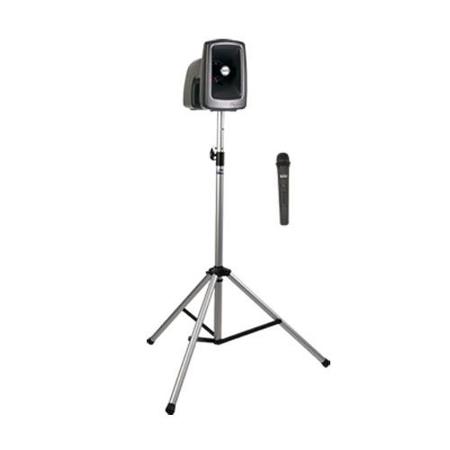 The Anchor Audio MEGA-BP1 MegaVox Basic Package 1 includes MegaVox PA System with built-in Bluetooth and dual wireless receiver (MEGA2-U2), a heavy duty speaker stand (SS-550) and a choice of one wireless handheld mic or headband and lapel mic with belt pack. The MegaVox Pro Public Address System is considered the industry standard portable PA system on the market. It is battery powered, which makes its completely portable and versatile. Thousands report that it's the most reliable portable public address system ever designed. With a powerful re-entrant horn driven speaker, the MegaVox Pro is ideal for voice amplification over long distances.