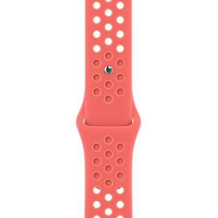 Made from a custom high-performance fluoroelastomer with compression-molded perforations for breathability, the Nike Sport Band is durable and strong, yet surprisingly soft. The smooth, dense material drapes elegantly across your wrist and feels comfortable next to your skin. An innovative pin-and-tuck closure ensures a clean fit.