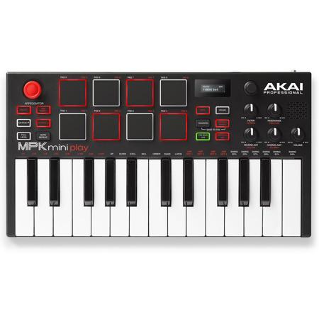 The ultra-portable MPK Mini Play is based on the world's most popular midi controller Akai Professional's MPK Mini-but now it comes packed with 128 sounds and its own built-in speaker. With 8 backlit MPC drum pads and a 4-way joystick for simple control, players have all they need to play their music anytime, anywhere. Four knobs (two banks capable of controlling eight different parameters) can be used to tweak sounds and edit multiple parameters in real-time, giving musicians even more performance possibilities. Powered by 3 "AA" batteries, the MPK Mini Play is built for hours of wireless fun.