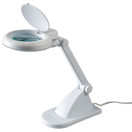 Perfect for precision work, this lamp magnifies and lights up the work surface. Features 3½" diameter, 3+12-diopter glass lens with 1.75x magnification. Adjustable lamp head and arm. Removable protective lens cover. Includes one T4 12w circular fluorescent bulb. Sturdy 4" x 8" base. Electronic ballast. UL listed.