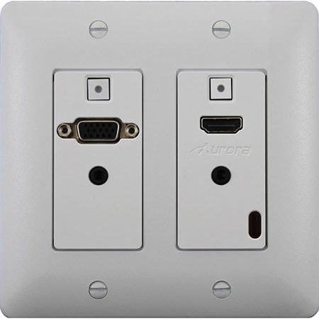 The Aurora Multimedia DXW-2 330'/600' HDMI/VGA Wall Plate to HDBaseT Black Extender is a 2 gang multi-input decora style wall plate with HDBaseT CAT extension. Its ability to convert VGA (YPbPr, S-Video, Video) with audio to HDMI locally and transmit the signal up to 600ft sets this unit apart from the competition. The sources are selectable with the buttons on the wall plate, DXB-8 1 gang 8 button panel, or remotely via RS-232 commands sent through the matching receiver device (DXE-CAT-RX, DXM Matrixes, etc).