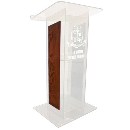 The SN3540 Acrylic Lectern is crafted from high-quality, durable acrylic, complemented by matching wood side panels made from robust red oak.