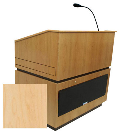The AmpliVox Coventry Lectern with Sound (Maple) is a custom solid hardwood integrated lectern system that provides the features and handsome profile for speech application in conference halls, auditoriums, theaters, etc. The lectern features a powerful 50 W amplifier that drives four built-in Jensen speakers for a rich sound that projects to audiences of up to 2500 people.