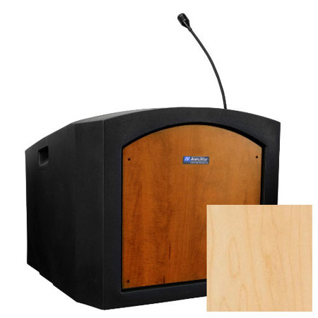 The AmpliVox Pinnacle Table Top Lectern with Sound, crafted in elegant Maple, is a stylish and professional addition to any presentation or public speaking event. This high-quality lectern boasts a durable polyethylene shell that withstands rigorous use, whether indoors or outdoors, ensuring longevity and reliability.