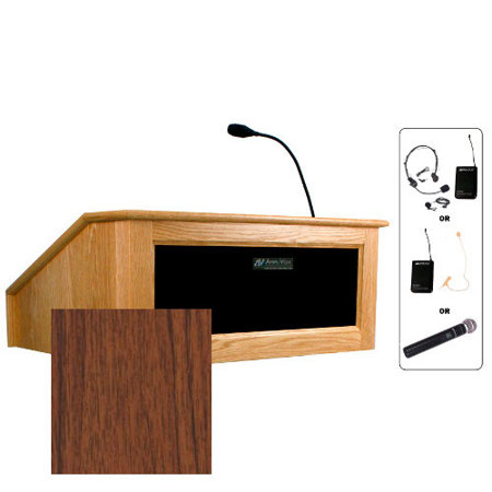 Experience the blend of style, functionality, and convenience with the AmpliVox SW3025 Wireless Victoria Tabletop Lectern with Lapel Mic in Walnut.