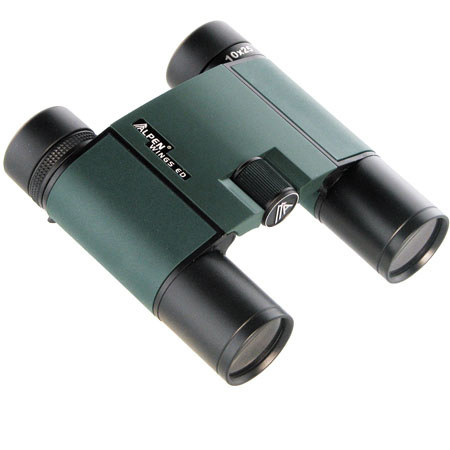 The Alpen Wings ED 10x25mm Compact Waterproof BAK4 Roof Prism Binocular has an ergonomic light-weight design with amazingly bright, sharp optical performance. It features an open hinge design that provides comfortable viewing and ED "extra low dispersion" glass for the very best in color fidelity and contrast in all light conditions. It also features Alpen's fully multi-coated, PXA phase correction lens coating, as well as a silver metallic prism coating.
