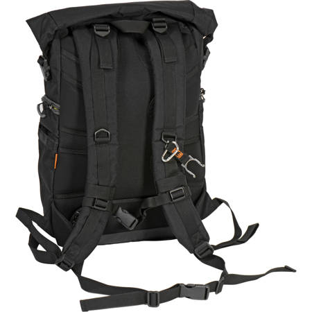 An external water bottle holder and a flashlight holder are included. The main camera compartment in signature Hi-Vis yellow is soft and padded and can be reconfigured as needed. It can be accessed through the side access point, bottom back access or through the top, making it easy to grab. Zippers are designed with large loop pulls for easy one-hand operation. Built-in retractable any-weather cover.