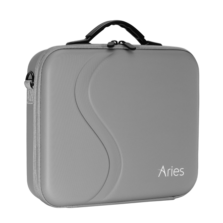 The Aries Carrying Case includes a shoulder strap and a retractable handle, providing versatile carrying options for ease of transport.