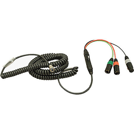 The Ambient Recording Hirose 12-pin Male to 7-pin XLR Male Coiled Breakaway Cable comes with a Y cable and is used with Wendt x4 4-Channel and Wendt x5 5-Channel Mixers. The signal returns via a a 5-pin XLR female connector.