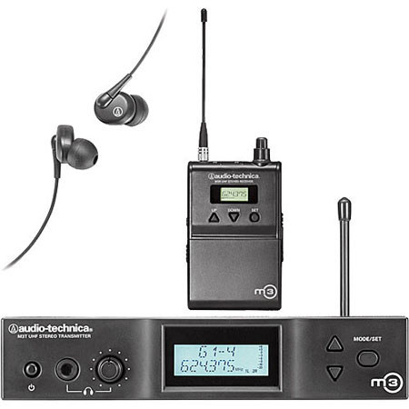 Audio-Technica M3 Wireless In-Ear Monitoring System, Includes M3T Stereo Transmitter, M3R Stereo Receiver, EP3 Headphones, Band M 614.000 - 647.000MHz