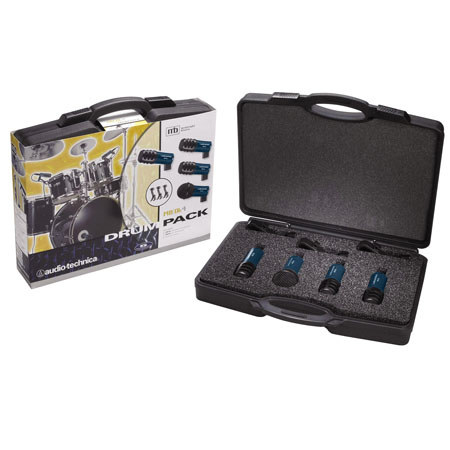 The Audio-Technica MB/DK4 Dynamic Drum Microphone Kit is an affordable, complete drum microphone kit for home studios, rehearsals, sound reinforcement, etc. Included in this kit are three MB5K cardioid microphones, MB6K cardioid kick drum microphone, three drum microphone mounts and durable carrying case.