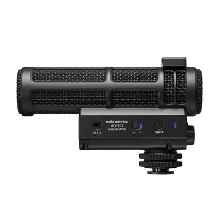 Built for professional videographers and content creators, the ATV-SG1 on-camera shotgun microphone delivers natural, high-resolution audio from a feature-rich, easy-to-use device. The compact mic, which adopts the solid-mesh style of Audio-Technica's classic 20 Series, is designed for use with DSLR, mirrorless SLR, and other cameras.