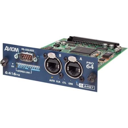 The powerful 6416Y2 A-Net Interface Card is a 16x16 Pro64 I/O card for Yamaha digital devices. When connected to a Pro64 input device such as the 6416m Mic Input Module or the All Frame Multi-Modular I/O System, the 6416Y2 can input up to 16 channels digitally into the Yamaha console. Remote head amp control is available by using m-control which sends remote control commands directly from the console channel to the mic preamp over the Pro64 network. Adding additional 6416Y2 cards to a console expands its capacity, allowing the creation of a compact digital snake with a direct digital connection to the console. In addition to its 16 channel per card input capabilities, each 6416Y2 card can simultaneously output up to 16 channels, sending mix outputs or monitor feeds to the digital snake. With an ASIA-Net Systems Interface module added to the Pro64 network, Pro16 Series monitor mixing products like the A-16II and A-16R Personal Mixers can be used.