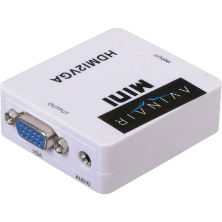 Enclosed in a plastic case, the Spitfire Pro Mini HDMI to VGA Converter from Avinair turns an HDMI input signal into analog VGA output. It is compatible with any computer, TV or device with VGA and/or HDMI inputs and has seamless plug-and-play capability, as it auto-scales to any display's native resolution.