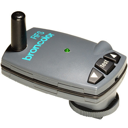 Radio transmitter with 10 digitally coded channels for wireless triggering of Broncolor flash units with an integrated RFS interface. It is contained in a plastic housing and has a fixation base for the camera's hot shoe and a sync cable. Synchronization of the flash via the accessory shoe or the sync connector of the camera. The operational distance for power packs outdoors is up to 50 m; in closed rooms up to 30 m, compact units up to 30 m / 20 m.
