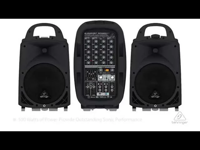 This portable PA system comes with everything you need for any medium to large gathering. It includes a lightweight, 500-Watt "wireless-ready" 6-channel mixer-amplifier with +48 V phantom power, two high-quality detachable loudspeakers, and the XM1800S microphone, complete with all necessary cables and accessories. All these components pack neatly into one ultra-lightweight, suitcase-style format for easy transportation. Experience the power, versatility, and convenience of the Behringer Europort PPA500BT 500-Watt 6-Channel PA System.