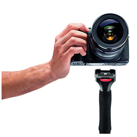 The top of one pole's handgrips features an integrated camera mount with quick wheel attachment, which permit its use as a convenient monopod. Simply remove the protective cap and screw into the camera to attach it.