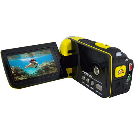 Bell & Howell WV30HD SplashHD camcorder (Yellow) is Waterproof to 10' and can record FULL HD 1080p videos as well as shoot vivid 16MP photos. With the dedicated Underwater Hot Key, easily capture underwater scenes with clarity, while the ultra-clear 3" LCD screen provides for that on-the-go viewing experience. An SDHC card slot provides for storage up to 32GB. Other features include auto face detection, time-lapse playback, motion detection, pre-record and built-in LED light.