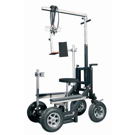 It works as a Doorway Dolly and Western Dolly. It is equipped with a Bungee Cam attachment, tripod holder and a Steady-cam post to be utilized for fast shots using a steady-cam. It can be set up for low camera angles for animal point of view. The Action Dolly has been used successfully in major studios.