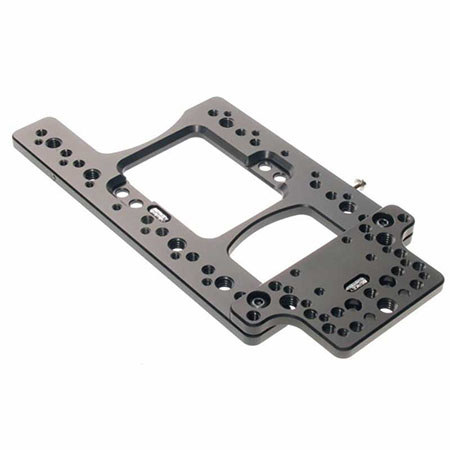 With the included extension plate you can add many more accessories to the front of your F3 including top mounted iris rods, monitor mounting arms or even an additional small camera baseplate for a second camera. The extension plate mounts to the front two 1/4-20 holes on the Top Mount Accessory Cheese Plate and can only be used with this plate. The plate has nine 1/4-20 and three 3/8-16 tapped holes for mounting your accessories.