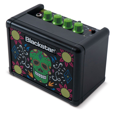 The FLY 3 Sugar Skull is an innovative, cutting edge 3 watt mini amp which combines two channels, tape delay and the Blackstar patented Infinite Shape Feature (ISF) to create the perfect compact and portable guitar amplifier. It's advantageously small and packs a punch with big TONE, even at the lowest volumes.