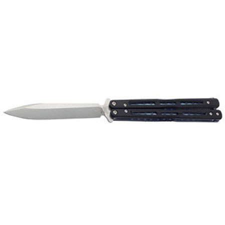 Benchmade 51 Morpho 4.25" Bali-Song Springlatch Plain Edge Knife comes with Crowned Modified Spear-Point Blade. It is a larger version of the Benchmade Balisong 32. The 51 Morpho Balisong Butterfly features a premium D2 steel blade with black G10 handles. The hand polished hardware, jeweled blue titanium liners and Ti carry-clip provide the perfect accent to this great Butterfly Knife.