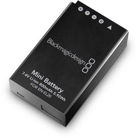 The Blackmagic Pocket Cinema Camera includes a removable and rechargeable lithium ion battery, which provides up to an hour of continuous recording time. The Nikon EN-EL20 battery type is commonly available, so you can purchase multiple batteries if you need to shoot for longer periods. The battery charge time is approximately 1 hour 15 minutes with the camera off. With a wide 12-20V power input range the camera can easily be powered and charged from larger professional camera batteries and other power sources.
