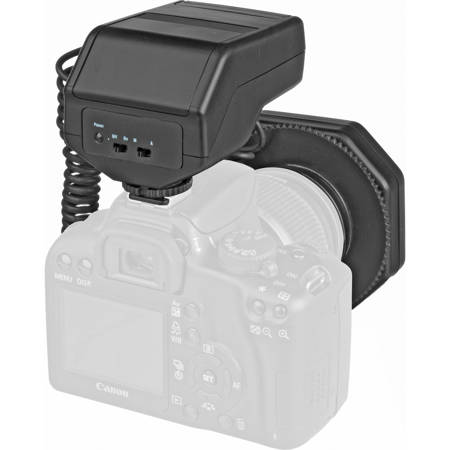The Bower SFDRF Ringlight Flash is a round ringlight flash that mounts onto the front of a lens and is ideal for macro photography. It is designed to work with digital SLR cameras (in Auto or Manual modes), as well as with film cameras. It does not provide any dedicated functions to the camera. It comes provided with 49mm, 52mm, 58mm and 62mm adapter rings.