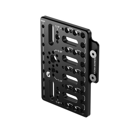 If you've fleshed out your RED rig with our Left and Right Side Plates, and still found you need camera space, the Rear Cheese Plate gives you some extra space out the back of your camera. Along with a border of 1/4" and MAP M4 points, you'll also have a 3/8" anti-twist screw thread for more secure screw-in accessories. If you're feeding cables or transmitters, the Rear Cheese Plate has extra slots for cable management and non-standard accessories.