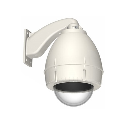 Outdoor wall mount domes attach to most vertical surfaces and have an IPX4 or IP66 selectable IP rating. Housings are made from durable ABS plastic and capsules are made from polycarbonate. The 24V AC heater and blower maintain operating environment (-4 - 104 F). The AC power adapter is not included and must be purchased from a third party manufacturer.