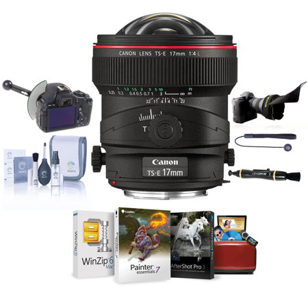 The Canon TS-E 17mm f/4L lens expands shooting possibilities exponentially on EOS Digital cameras. Designed with UD glass to minimize and compensate for chromatic aberrations, with specially coated aspherical elements for the highest possible glare-free image quality, this tilt-shift lens offers an angle of view of 93½. New TS revolving lets users freely combine tilting and shifting within the range of +/- 90½ in the direction of movement.