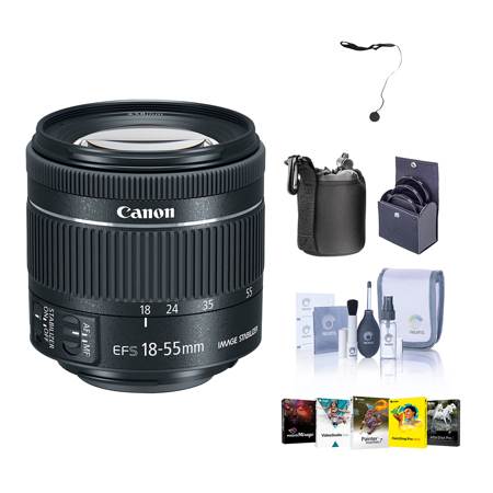 Compact and lightweight, the EF-S 18-55mm f/4-5.6 IS STM packs together legendary Canon optics, a versatile zoom range and quiet operation for power on the go. Its small size lets it fit just about anywhere, making it a great lens to bring with you on a hike, to a concert or on your everyday travels. The lead screw-type stepping motor (STM) helps ensure smooth autofocus and near-silent operation, helping you capture videos with great audio and minimal background noise so you won't distract your subject in a quiet photo environment. Advanced image stabilization can result in sharper photos with minimal blur, even in low light. With a compact size, high image quality and versatile zoom, the EF-S 18-55mm f/4-5.6 IS STM is designed to fit into your life.