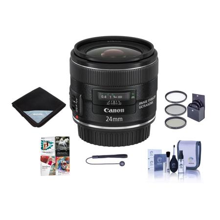 Canon EF 24mm f/2.8 IS USM Lens U.S.A. - Bundle - with Pro Optic 58mm Filter Kit (UV/CPL/ND2), Lens Cap Leash, Professional Lens Cleaning Kit, Lens Wrap (15x15) - PC Software Package